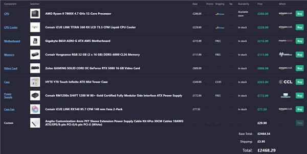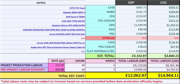 除了高昂的人工费,这家工作室对硬件的报价也让人费解,他们给出的3849美元的硬件价格,包括了一颗7900X处理器和一块RTX 4080 Super显卡。